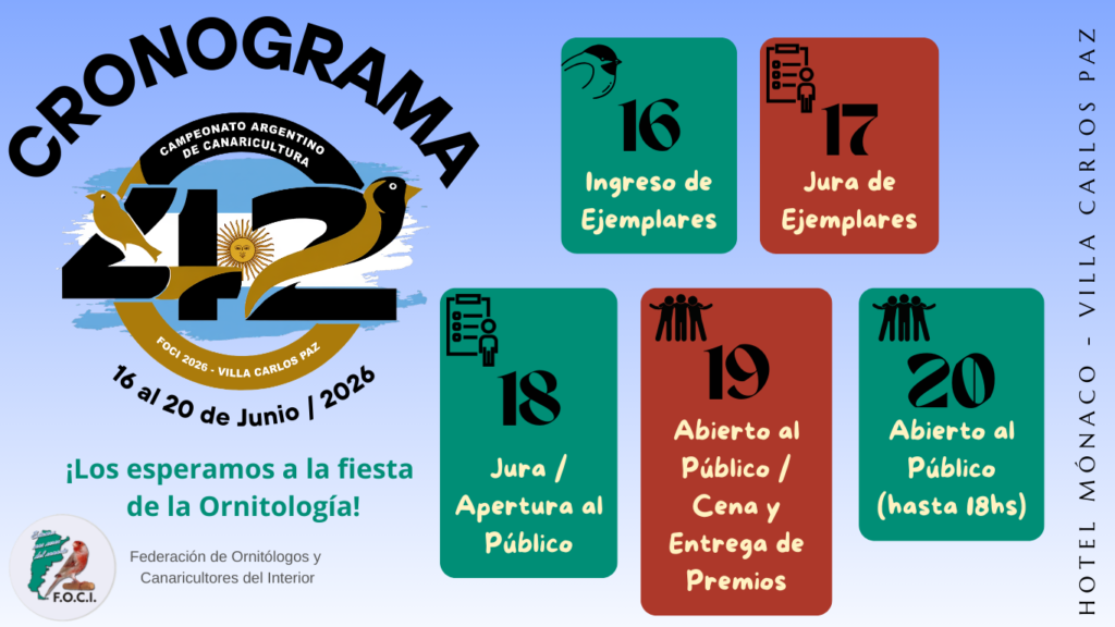 Aquí te dejaremos toda la información que necesites conocer respecto al Campeonato Argentino de Canaricultura de este año.